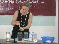 Also introduced at the product demonstration was Prime Wash – a special laundry detergent with anti-bacterial properties and Vitamin E. Audrey showed dirt particles visibly escaping the weaves of a thick sock after it was immersed in the wash water. The Vitamin E in Prime Wash also helps keeps your hands soft, Audrey explained.